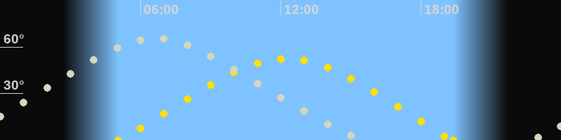 | Höchster Stand (Kulmination) | 06:35 Uhr (h=65.2°) |