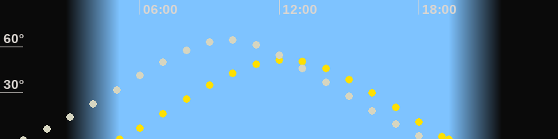 | Höchster Stand (Kulmination) | 09:46 Uhr (h=64.6°) |