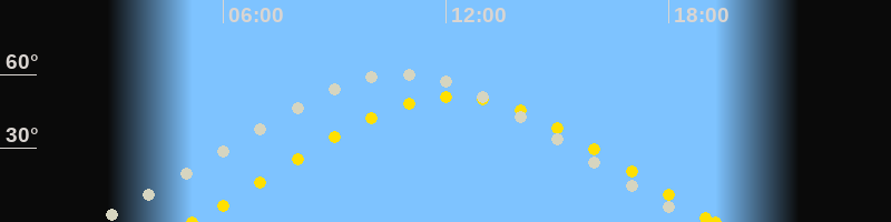 | Sonnenaufgang | 05:09 Uhr im Osten (αAz = 70.3°) |