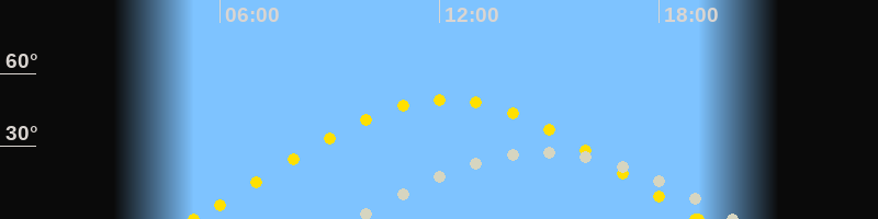 | Sonnenaufgang | 05:17 Uhr im Osten (αAz = 73.1°) |