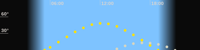 | Sonnenaufgang | 05:21 Uhr im Osten (αAz = 74.8°) |