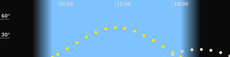 | Höchster Sonnenstand (Kulmination) | 12:09 Uhr (h = 46.8°) |