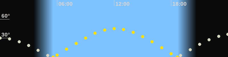 | Sonnenaufgang | 05:35 Uhr im Osten (αAz = 80.1°) |