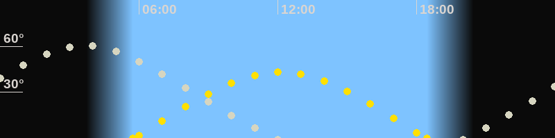 | Sonnenaufgang | 05:43 Uhr im Osten (αAz = 83.1°) |