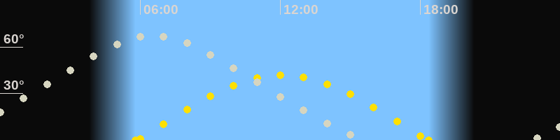 | Höchster Stand (Kulmination) | 06:32 Uhr (h=67.3°) |
