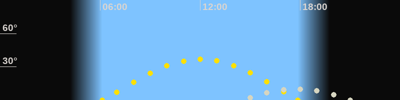 | Höchster Sonnenstand (Kulmination) | 12:00 Uhr (h = 36.9°) |