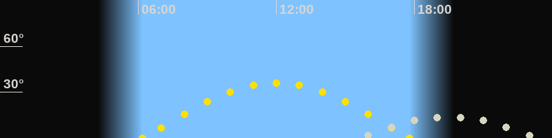 | Sonnenaufgang | 06:11 Uhr im Osten (αAz = 94.1°) |