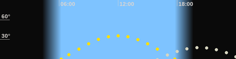 | Sonnenaufgang | 06:12 Uhr im Osten (αAz = 94.7°) |
