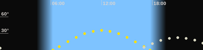 | Sonnenaufgang | 06:14 Uhr im Osten (αAz = 95.4°) |