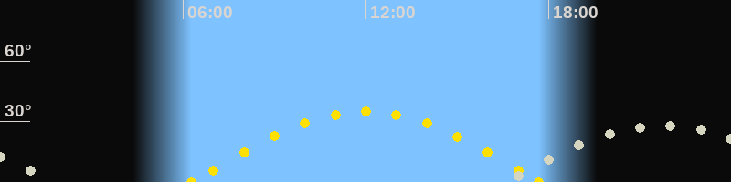 | Sonnenaufgang | 06:16 Uhr im Osten (αAz = 96°) |