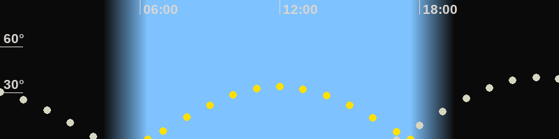 | Sonnenaufgang | 06:19 Uhr im Osten (αAz = 97.2°) |