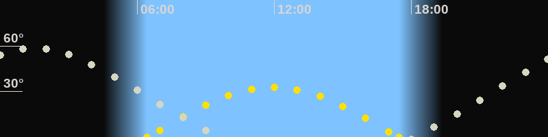 | Sonnenaufgang | 06:25 Uhr im Osten (αAz = 99.6°) |