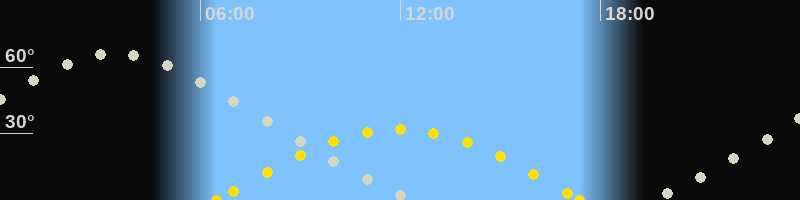 | Höchster Sonnenstand (Kulmination) | 11:56 Uhr (h = 31.9°) |