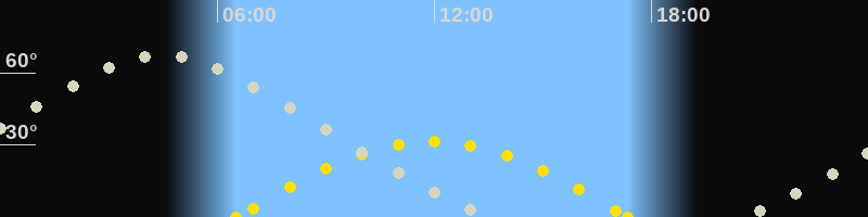 | Sonnenaufgang | 06:30 Uhr im Osten (αAz = 101.4°) |