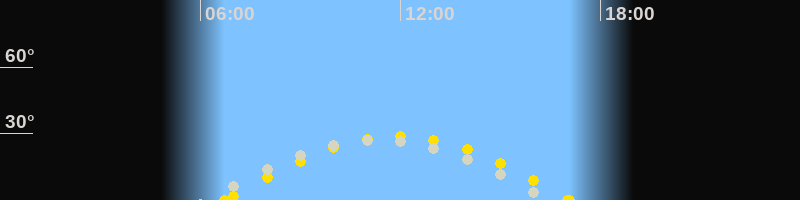 | Höchster Sonnenstand (Kulmination) | 11:54 Uhr (h = 28.6°) |