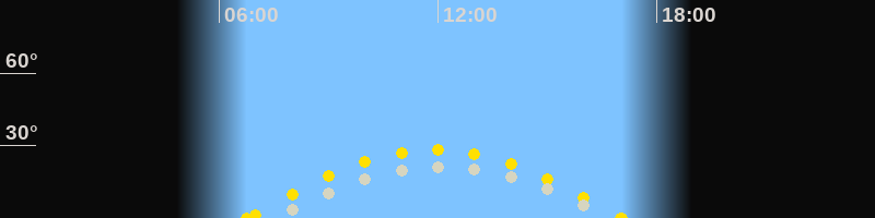 | Höchster Sonnenstand (Kulmination) | 11:54 Uhr (h = 28.2°) |