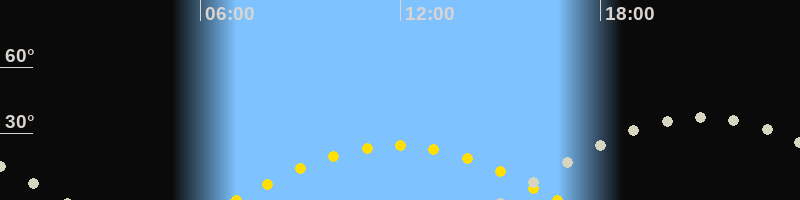 | Höchster Sonnenstand (Kulmination) | 11:53 Uhr (h = 24.5°) |