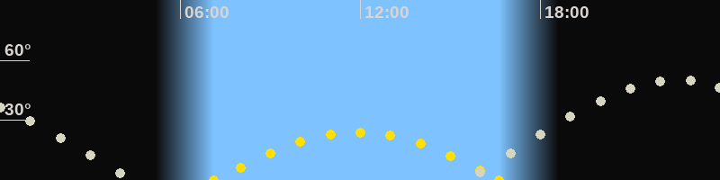 | Höchster Sonnenstand (Kulmination) | 11:53 Uhr (h = 23.9°) |