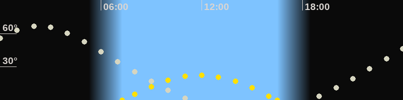 | Sonnenuntergang | 16:30 Uhr im Südwesten (αAz = 243.5°) |
