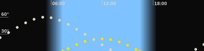 | Höchster Sonnenstand (Kulmination) | 11:54 Uhr (h = 21.6°) |