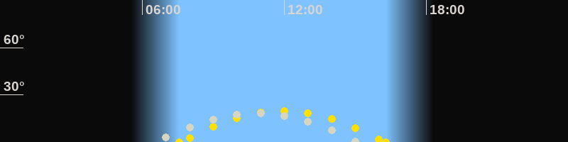 | Höchster Sonnenstand (Kulmination) | 11:55 Uhr (h = 19.8°) |