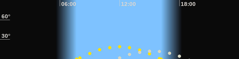 | Höchster Sonnenstand (Kulmination) | 11:56 Uhr (h = 18.7°) |
