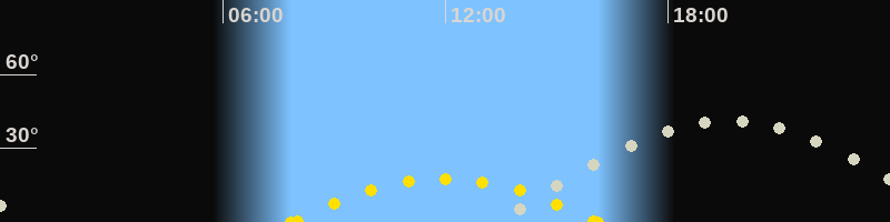 | Höchster Sonnenstand (Kulmination) | 11:58 Uhr (h = 17.6°) |