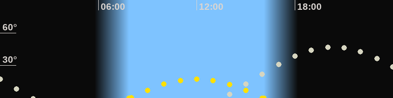 | Höchster Sonnenstand (Kulmination) | 11:59 Uhr (h = 17.5°) |
