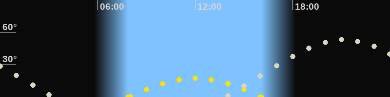 | Höchster Sonnenstand (Kulmination) | 11:59 Uhr (h = 17.3°) |