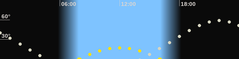 | Höchster Sonnenstand (Kulmination) | 11:59 Uhr (h = 17.2°) |
