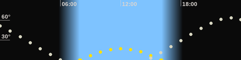 | Höchster Sonnenstand (Kulmination) | 12:00 Uhr (h = 17.1°) |