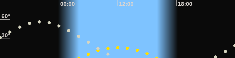 | Höchster Sonnenstand (Kulmination) | 12:02 Uhr (h = 16.4°) |