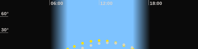 | Höchster Stand (Kulmination) | 13:03 Uhr (h=11.5°) |