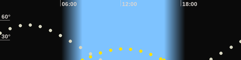 | Höchster Sonnenstand (Kulmination) | 12:16 Uhr (h = 16.9°) |