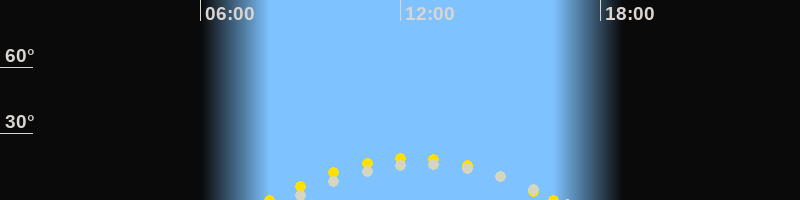 | Höchster Sonnenstand (Kulmination) | 12:20 Uhr (h = 18.9°) |