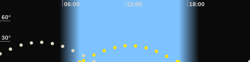 | Höchster Sonnenstand (Kulmination) | 12:24 Uhr (h = 23.9°) |