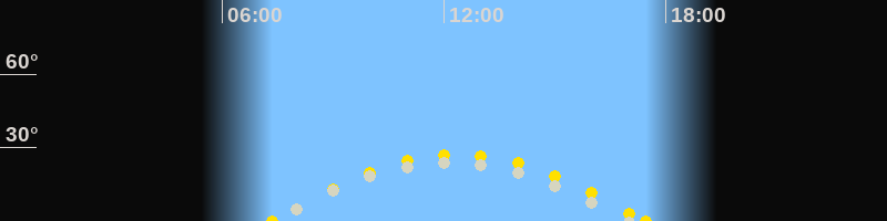 | Höchster Sonnenstand (Kulmination) | 12:24 Uhr (h = 27.2°) |