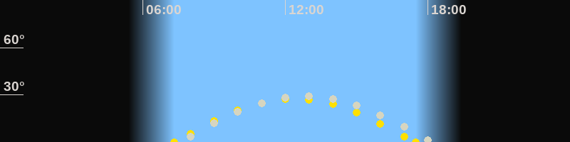 | Höchster Stand (Kulmination) | 12:44 Uhr (h=29°) |