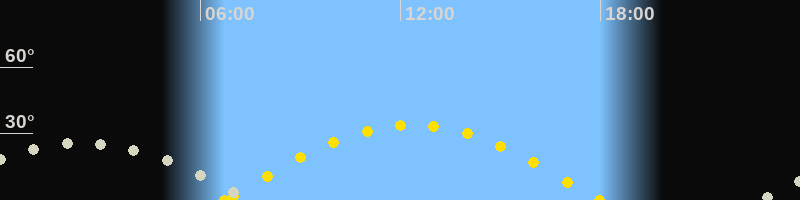 Höchster Sonnenstand (Kulmination)12:21 Uhr (h = 33.9°)