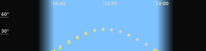 Höchster Sonnenstand (Kulmination)12:18 Uhr (h = 38.6°)