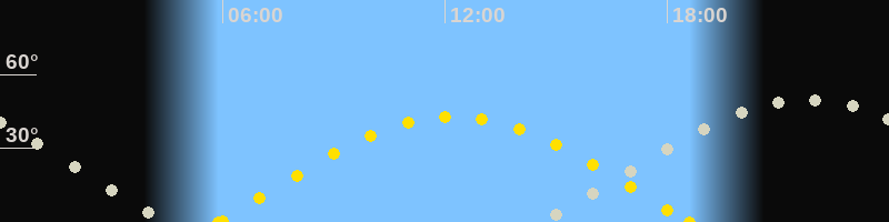 Höchster Sonnenstand (Kulmination)12:14 Uhr (h = 42.9°)