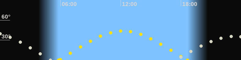 Höchster Sonnenstand (Kulmination)12:14 Uhr (h = 43.7°)