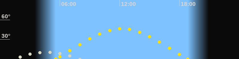 | Höchster Sonnenstand (Kulmination) | 12:12 Uhr (h = 46.4°) |