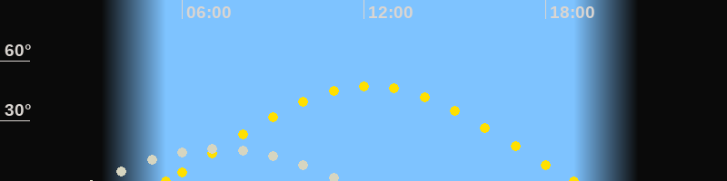 | Sonnenaufgang | 05:27 Uhr im Osten (αAz = 76.4°) |