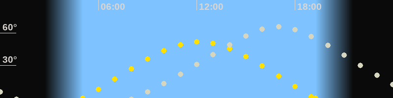 | Sonnenaufgang | 05:02 Uhr im Osten (αAz = 69.6°) |