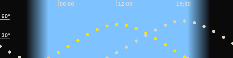 | Sonnenaufgang | 04:58 Uhr im Osten (αAz = 68.5°) |