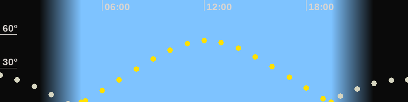 | Höchster Sonnenstand (Kulmination) | 12:07 Uhr (h = 54.3°) |