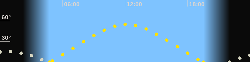 | Sonnenaufgang | 04:43 Uhr im Nordosten (αAz = 64.3°) |