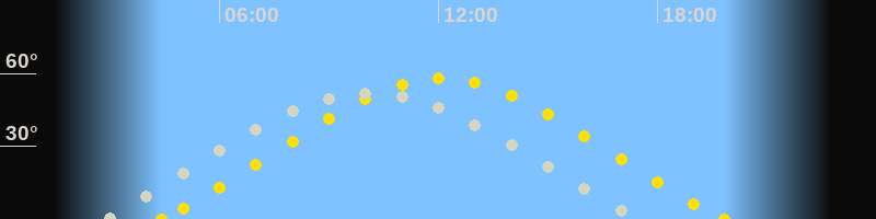 | Höchster Sonnenstand (Kulmination) | 12:06 Uhr (h = 58.1°) |