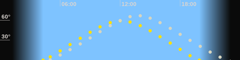 | Höchster Sonnenstand (Kulmination) | 12:06 Uhr (h = 59°) |